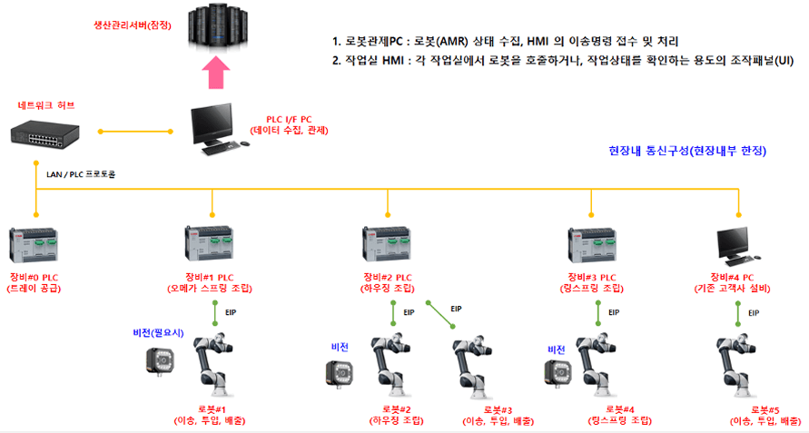 각 단위설비 ↔ 데이터 수집 서버 간 데이터 네트워크 구축 (HardWiring)